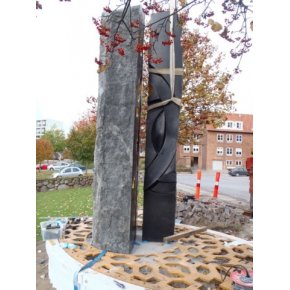 Morten Stræde, Basalt skulptur til Skt. Markus Kirke i Århus. 380 cm høj. Se billeder fra kunstner Morten Straede. Billeder Morten Stræde